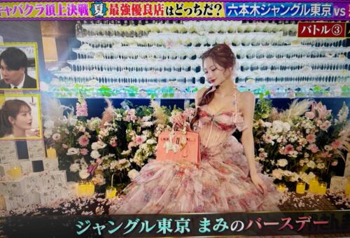 六本木ジャングル東京、まみさんのバースデー。いわゆるシャンパンタワーです。これだけで3000万円って腰がぬけそうです。