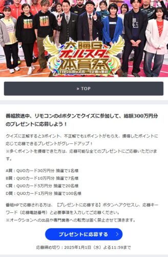 【大晦日オールスター体育祭】プレゼントクイズの参加と要点