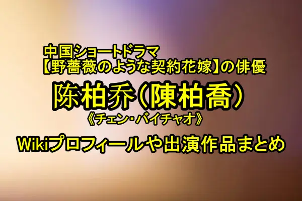 まとめ|中国ショートドラマ俳優『陈柏乔(陳柏喬 / チェン・バイチャオ)』Wikiプロフィール