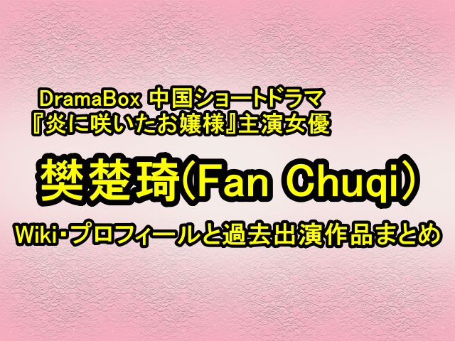 そこで今回は【炎に咲いたお嬢様】での主演女優である樊楚琦(Fán Chǔ Qí)について、wikiやプロフィール、そして過去出演作品などをまとめてみたいと思います。