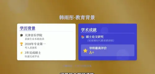 - 高学歴で天津音楽学院 演技学部大学院 修士課程修了。専攻の受験で首席修士課程をわずか3年間で修了し、ショートドラマを題材とした修士論文では最高の「A+」評価を取得している。