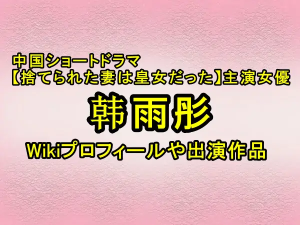 この記事では、ミステリアスな魅力を持つ韩雨彤さんのWikiプロフィールや、「捨てられた妻は皇女だった」以外の出演作品のドラマまで、情報をまとめてご紹介します。