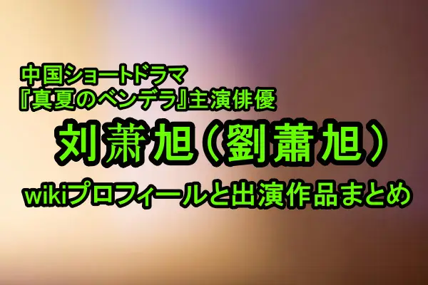 中国現地からの情報も集めたwikiやプロフィール、過去の出演作品や最新作などを見ながら、中国ショートドラマのイケメン俳優、刘萧旭(劉蕭旭)さんの魅力を探って行きましょう!