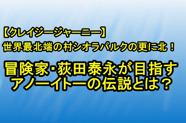 さて、6月16日(月)放送クレイジージャーニーで密着したのは、北極冒険家である荻田泰永さんが世界最北の村シオラパルクから更に北のアノーイトーという場所へ向かう過酷な旅。