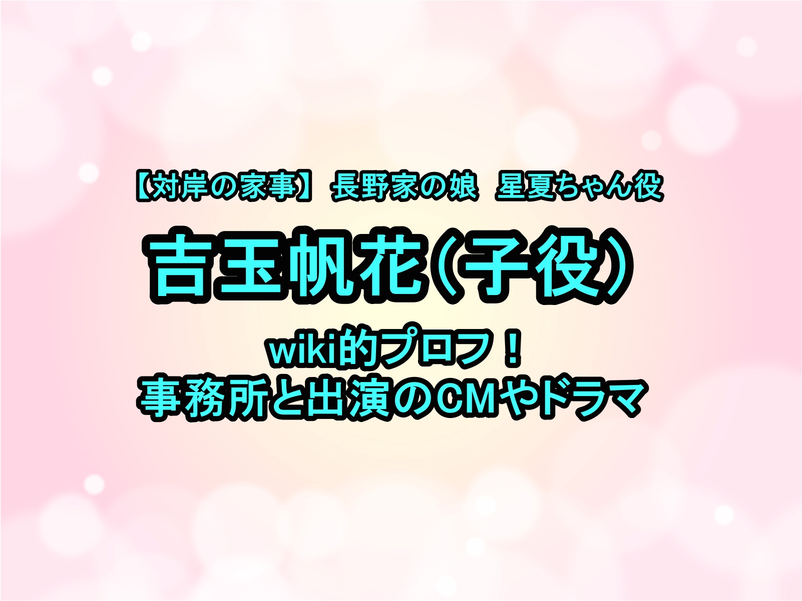- 吉玉帆花(よしたまほのか)ちゃんのCMやドラマの出演経歴は見当たりませんでした。【対岸の家事】がデビュー作である可能性が高いです。