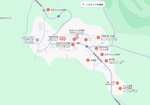 水澤寺の門前には「水沢うどん街道」と言われる通りがあり、水沢うどんの人気店が10軒ほども並んでいます。