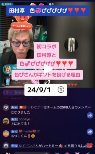 ここ(↓)にロンドンブーツの淳さんがTikTokライブで色ぴさんと投げ銭について会話するシーンがありました。