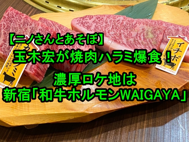- 8月8日(金)放送の『ニノさんとあそぼ』でゲスト玉木宏さんと訪れた焼肉ロケ地は、新宿の**「和牛ホルモンWAIGAYA」**が濃厚