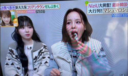 上記リンクの戸越銀座編の記事でも少し触れましたが、実は2024年12月にNiziUのマコとミイヒが新大久保で目撃されていたのです。