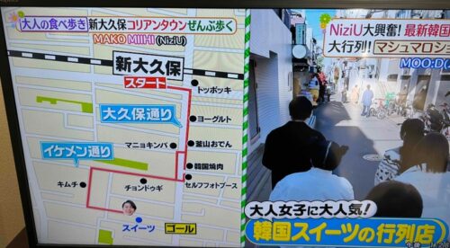 今回NiziUのマコとミイヒがヒルナンデス新大久保ロケで歩いたのはやはりコリアンタウン一帯でした。
