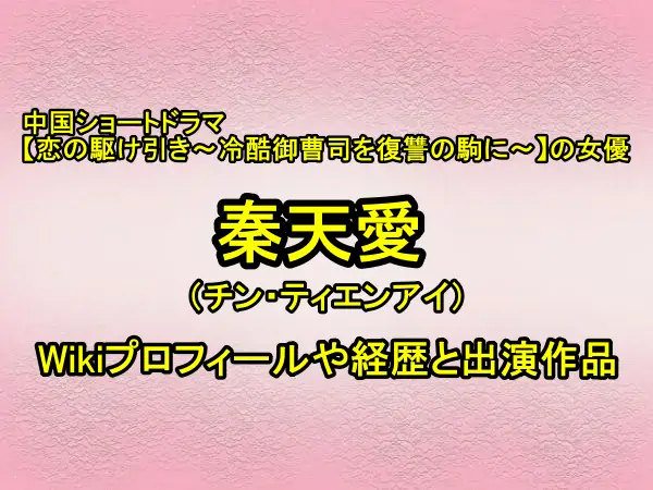 そこで、本記事では女優・秦天愛さんのWikiプロフィールや経歴、そして上記【恋の駆け引き〜冷酷御曹司を復讐の駒に〜】を含めた代表的な出演作品などをまとめてお届けします。