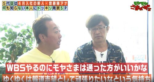 齋藤陽アナ同様に新人時代に抜擢された田中瞳アナもモヤさまの経験を得て報道系WBSへ。モヤさまが報道を目指す新人登竜門になりつつあるのかも(?)。