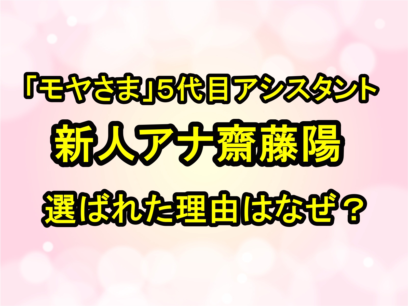 さて、モヤさまの5代目アシスタントに選ばれた新人アナの斎藤陽さん。入社3か月ほどの新人である齋藤陽アナが大抜擢された理由などを勝手に考察してみました!