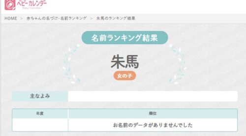 ひょっとしたら私たち世代では馴染みがなくても最近のキラキラネームでは多いのかもと思い、女の子で「朱馬=しゅま」という読み方の名前を調べてみました。