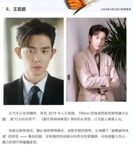 王晨鹏さんは、俳優として活動を始める前、キャリア初期は自動車業界に身を置き、その後モデルへと転身しました。このモデルとしての経歴を経て、2019年にショートドラマ界へ本格的に参入しました。