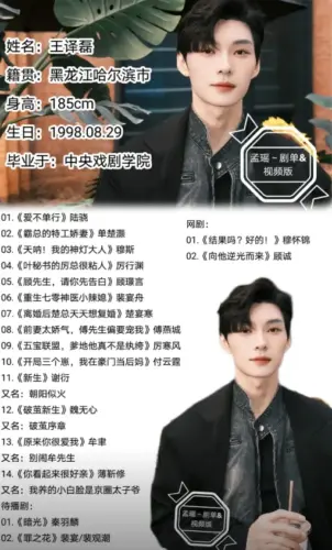 王译磊の俳優としてのキャリアは比較的浅いものの、非常にハイペースで短劇(ショートドラマ)を中心に出演しており、