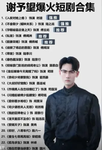 - 驚異的な出演数: 2024年だけで、謝予望さんは20作品以上の縦型微短劇を各プラットフォームで配信しており、ショートドラマ界における彼の圧倒的な専門性と人気を示しています。