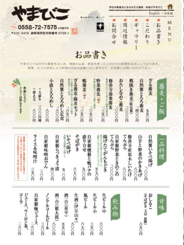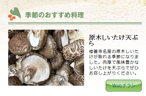原木しいたけは「やまびこ」さんのHPで季節おすすめ料理として掲載されてます。
