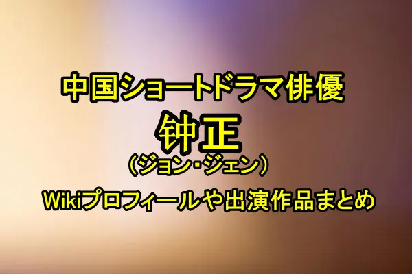 そこで、本記事では中国ショートドラマで活躍の俳優・钟正(ジョン・ジェン)さんのWikiプロフィールや経歴、そして受賞歴を含む代表的な出演作品をわかりやすくまとめてお届けしたいと思います。
